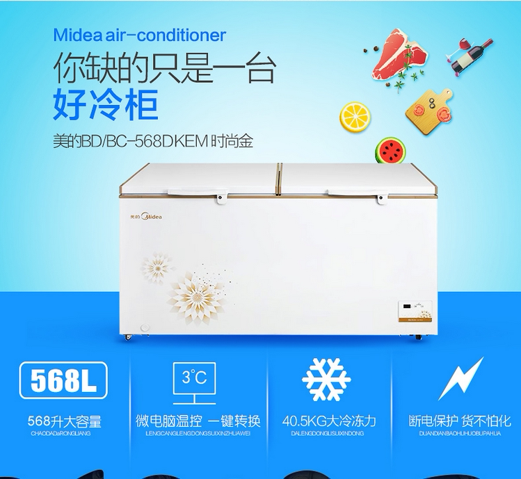 tủ đông bé Midea beauty 568L 768LDKEM thương mại ngang đơn nhiệt độ tủ đông tủ lạnh công suất lớn tủ đông lạnh hải sản tủ đông có ngăn mát Tủ đông
