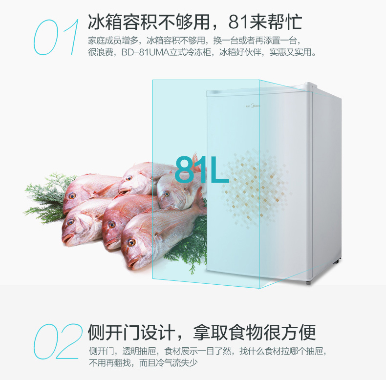 tủ đông inox sanaky Midea / beauty BD-81UMA Tủ đông nhỏ nhà lạnh tủ lạnh tiết kiệm năng lượng theo chiều dọc tủ kem sanaky Tủ đông