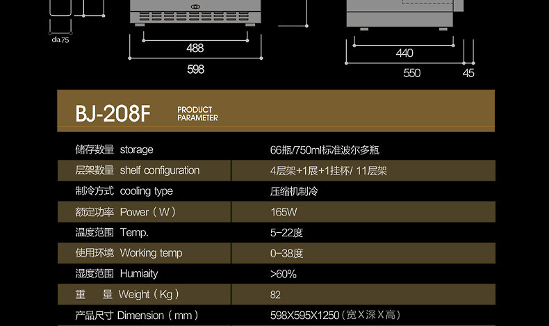 tủ góc để rượu Zunbao BJ-208B đá thanh nhiệt độ không đổi rượu làm lạnh máy nén tủ lạnh tủ trà tươi tủ kính trưng bày tủ 	tủ rượu alaska