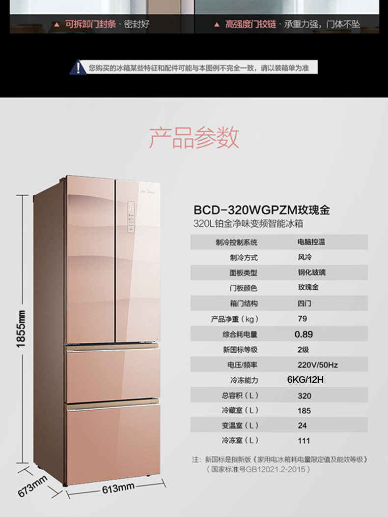 tủ lạnh 120l Midea Midea BCD-320WGPZM 421 Tủ lạnh ba cửa biến tần làm mát bằng không khí kiểu Pháp - Tủ lạnh tủ lạnh mini tiết kiệm điện