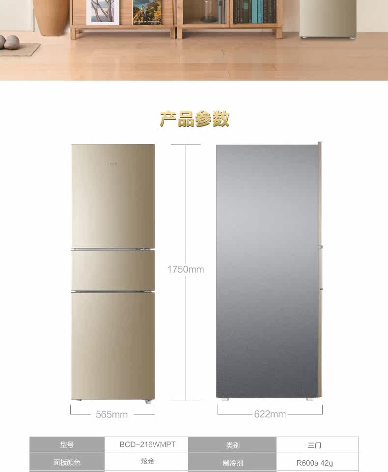 tủ lạnh 300 lít Haier / Haier BCD-216WMPT ba cửa 216 lít làm lạnh bằng không khí lạnh tủ lạnh nhà nhỏ đông lạnh - Tủ lạnh giá tủ mát sanaky Tủ lạnh