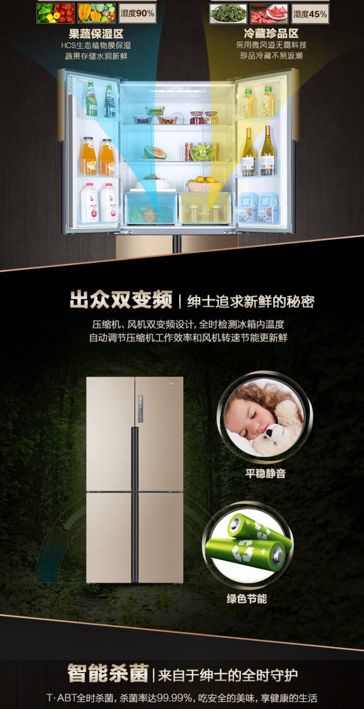 tủ lạnh dưới 4 triệu điện máy xanh Haier tủ lạnh bốn cửa không có sương giá chéo cửa đôi nhà Haier / Haier BCD-458WDVMU1 tu lanh 2 canh Tủ lạnh