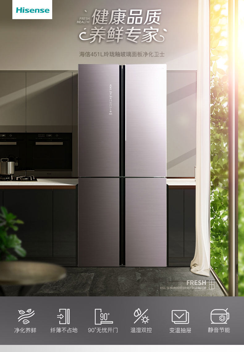 tủ lạnh hitachi inverter Hisense / Hisense BCD-451WTDGVBP tủ lạnh mở chéo 451 lít nguyên mẫu vàng cát 99 mới - Tủ lạnh tủ lạnh aqua Tủ lạnh