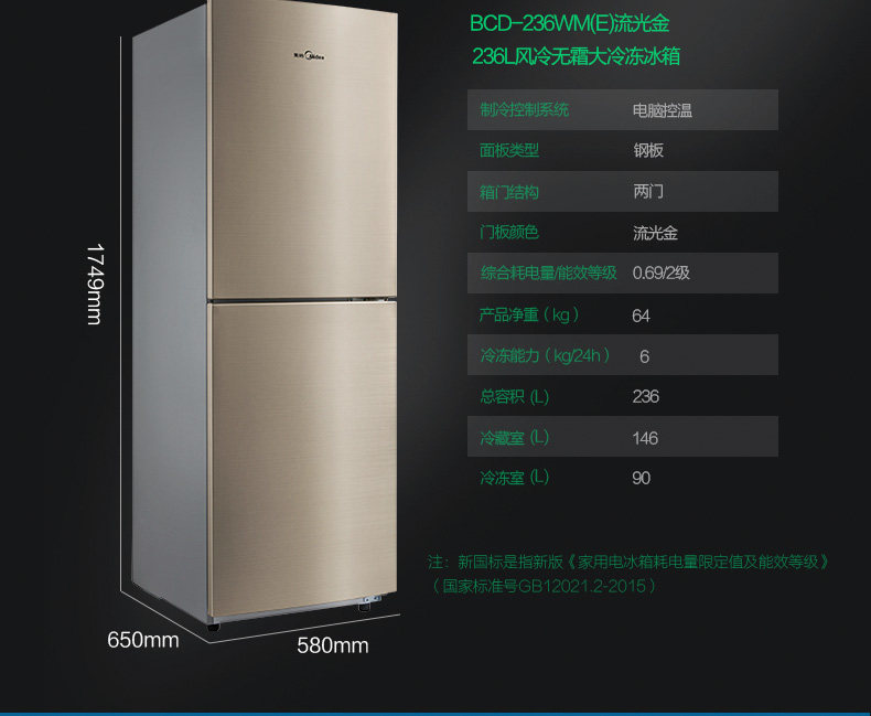 tủ lạnh panasonic 2020 Midea Beauty BCD-236WM (E) làm lạnh không khí tiết kiệm năng lượng - Tủ lạnh tủ lạnh 2 cánh panasonic Tủ lạnh