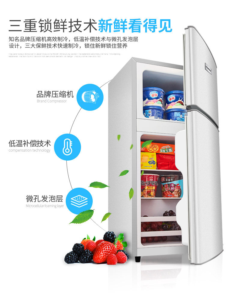 tủ mát siêu thị Shenhua tủ lạnh nhỏ tủ lạnh nhỏ nhà đôi cửa ba cánh cho thuê tủ lạnh đông lạnh hai thế giới mini - Tủ lạnh tủ lạnh 130l Tủ lạnh