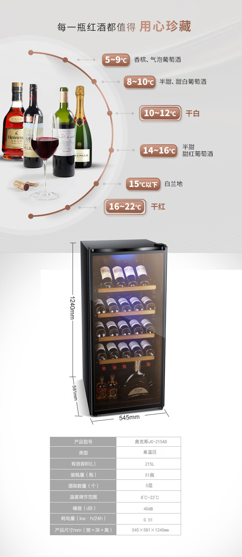 tủ rượu âm tường đẹp Tủ lạnh một cửa AUX / Aux JC-215AD hộ gia đình nhỏ trưng bày trà lạnh bảo quản rượu vang thanh lạnh tu dung ruou