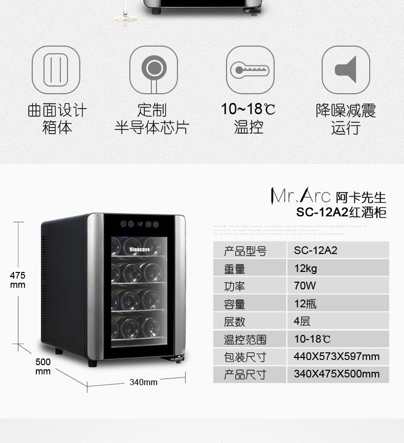 tủ rượu bằng nhựa đài loan Vinocave / Vinocaff SC-12A2 Tủ lạnh rượu vang nhiệt độ không đổi 12 tủ rượu vang điện tử Tủ nhiệt tu ruou dep Tủ rượu vang