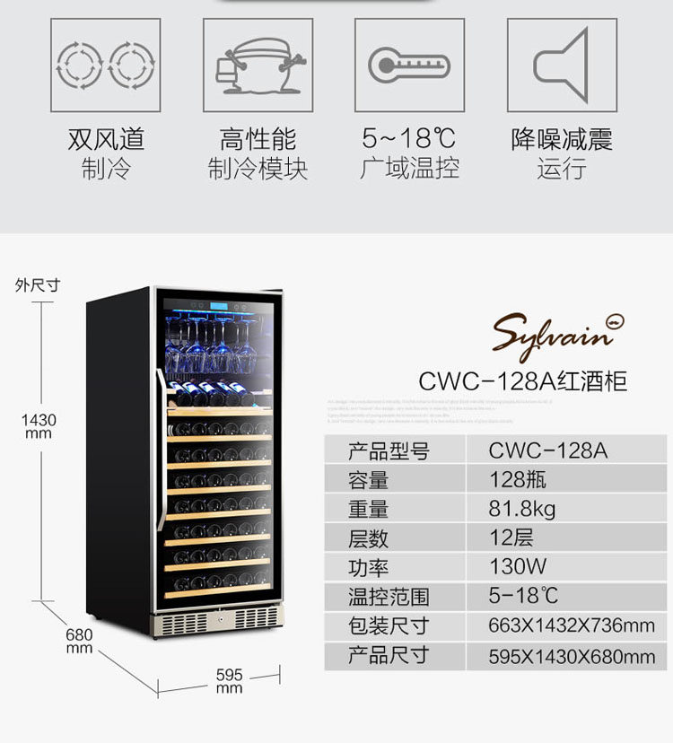 tủ rượu bằng sắt Vinocave / Vinocaff CWC-128A máy nén rượu làm mát tủ lạnh bảo quản tủ rượu tủ góc gỗ gụ Tủ rượu vang