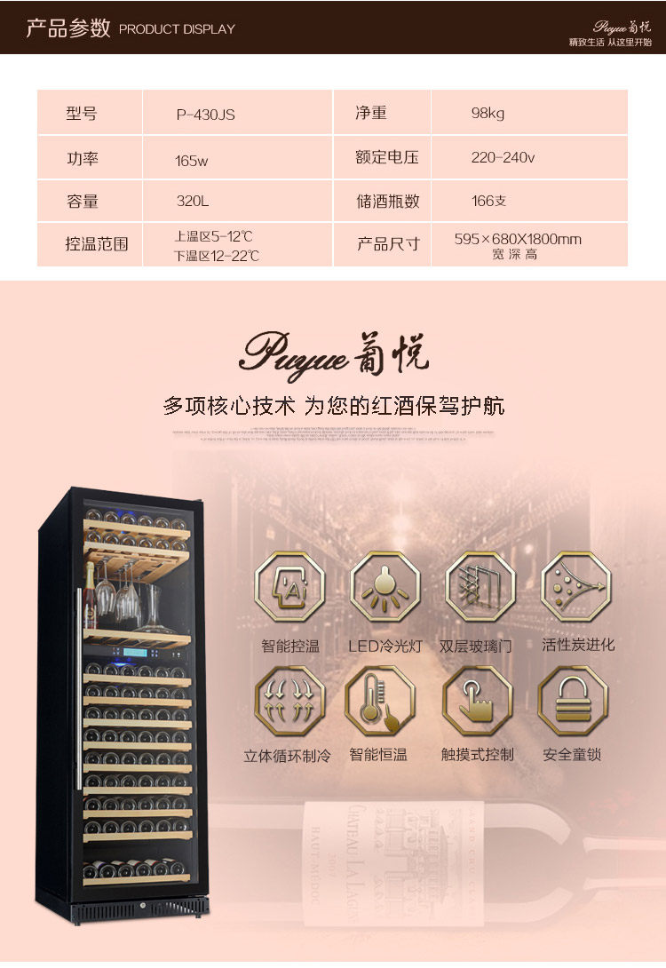 tủ rượu của người việt Bồ Đào Nha Yue P-168A tủ xì gà nhiệt độ và độ ẩm không đổi hộ gia đình gỗ rắn rượu làm mát nhiệt tủ rượu tủ trà tủ ẩm tủ rượu kết hợp vách ngăn Tủ rượu vang