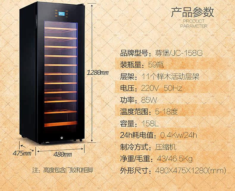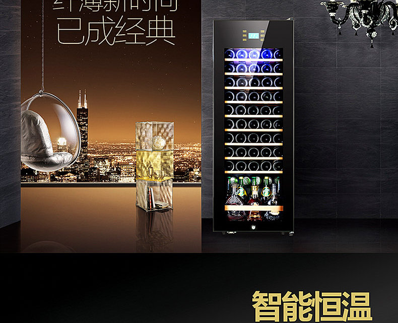 tủ rượu góc hiện đại Máy nén Zunbao BJ-158G Nhiệt độ không đổi thông minh Tủ rượu Trà uống Hàng khô Tủ kính trưng bày giá để rượu vang bằng gỗ Tủ rượu vang
