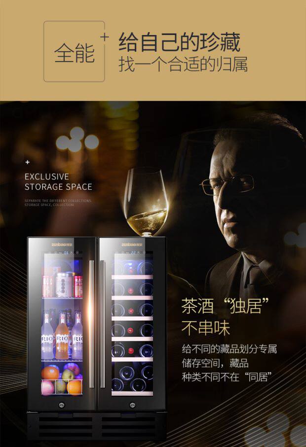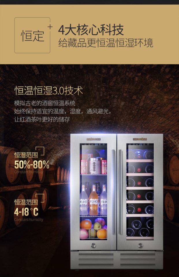 tủ rượu nhỏ Máy nén Zunbao BJ-66 nhiệt độ không đổi và độ ẩm nhiệt độ gấp đôi nhiệt độ hai cánh cửa tủ rượu - Tủ rượu vang tủ rượu quầy bar mini Tủ rượu vang