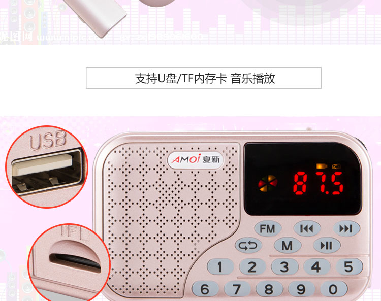 wifi tp link 2 râu Amoi M-128 radio MP3 ông già loa mini stereo máy nghe nhạc cầm tay - Trình phát TV thông minh củ phát wifi không dây Trình phát TV thông minh