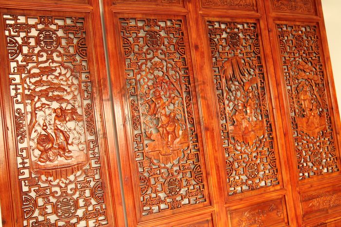 Gỗ rắn màn hình thơm khắc gỗ Tám Vị Thần Bất Tử trên biển màn hình gập phòng khách khách sạn tầng trang trí cửa sổ gấp màn hình Màn hình / Cửa sổ