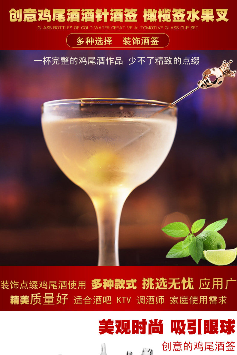 Thép không gỉ đồng cocktail rượu vang chai rượu vang dấu hiệu ô liu kim trái cây dấu hiệu trang trí dấu hiệu martini dấu hiệu rượu thủy tinh Rượu vang