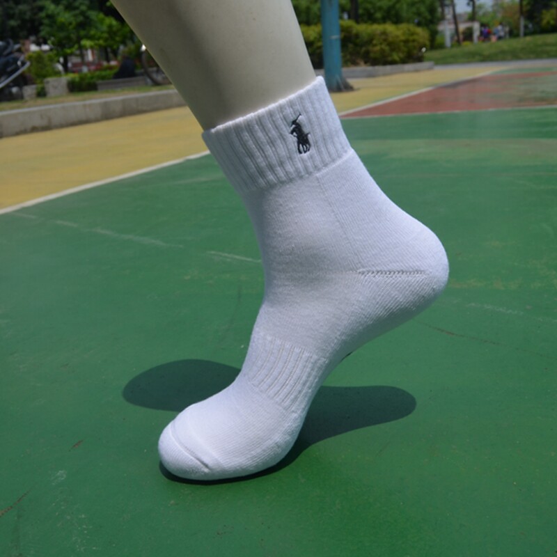 Vớ của nam giới Cotton Ống Khăn Dày Mồ Hôi Thở Khử Mùi Rắn Màu Đen và Trắng Thêu Thể Thao Vớ Vớ nam