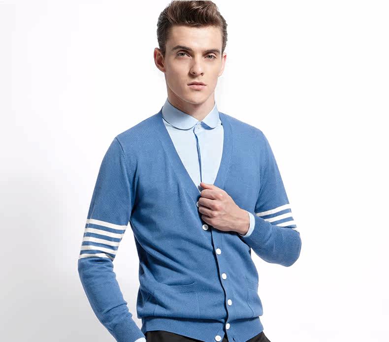 BASIQUE Yuanben British College xu hướng của nam giới Knit Cardigan đặc biệt sọc thiết kế áo len áo len