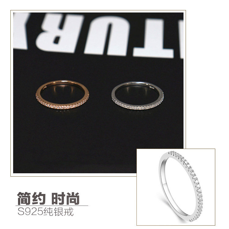S925 sterling silver trang trí đơn giản vòng zircon hàng tốt kim cương nữ ngón trỏ ngón tay kim cương vòng đuôi nhẫn ngón tay cái nhỏ mô phỏng sinh viên vòng Nhẫn