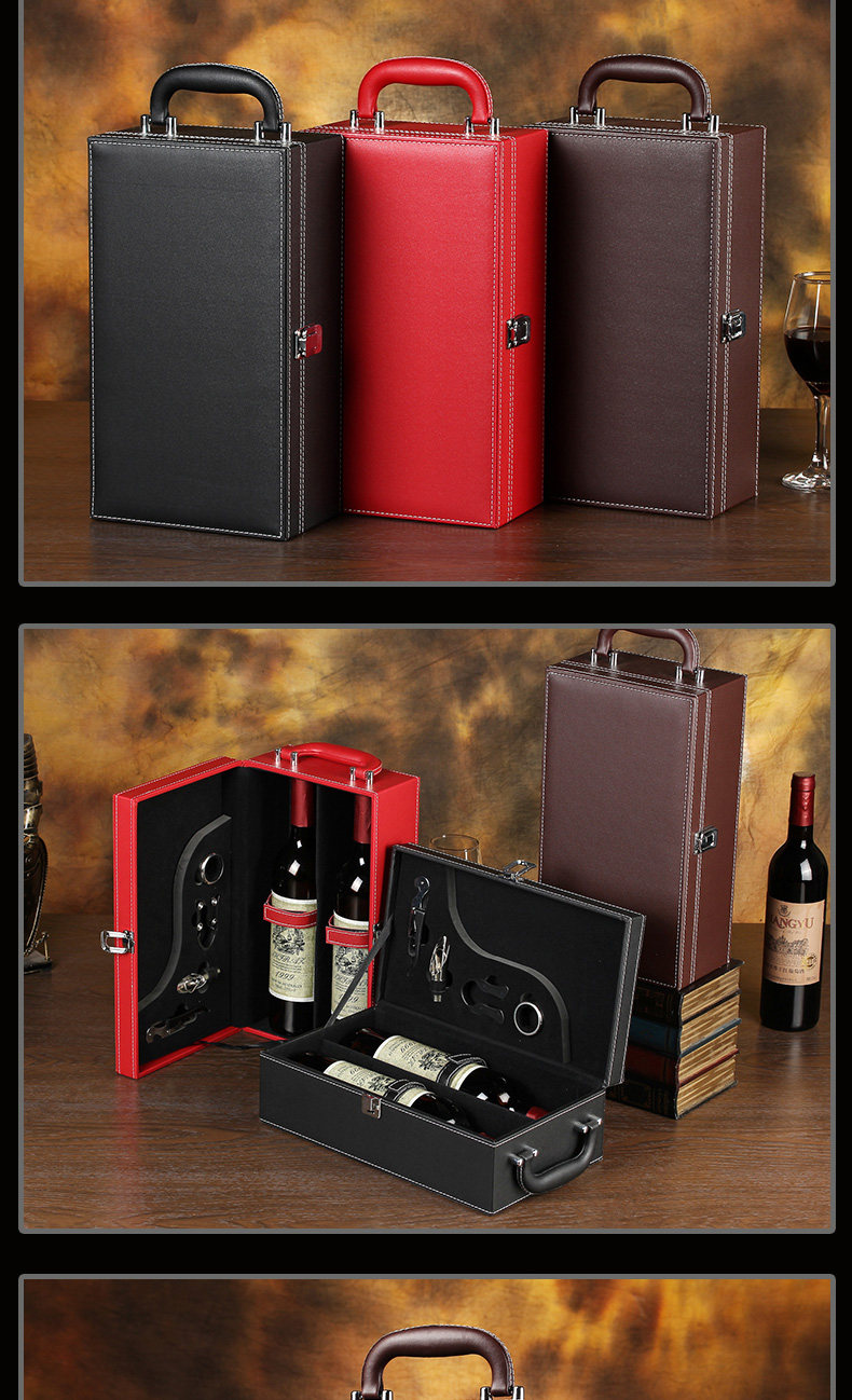 Hongtai rượu vang đỏ hộp quà tặng đen đỏ nâu đôi gói rượu vang hộp rượu hộp da hộp rượu vang bộ Rượu vang