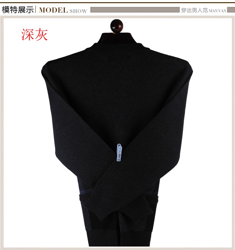 Vàng thỏ nam trung niên của nam giới len cardigan V-Cổ dày màu rắn áo len áo mùa thu và mùa đông áo len nam Hàng dệt kim
