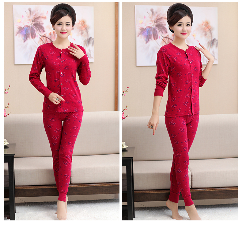 Trung và cũ tuổi Qiuyi Qiuku của phụ nữ đồ lót nhiệt kích thước lớn cotton áo len đầy đủ bông cardigan mẹ bà mở phù hợp với Phù hợp với nóng lên
