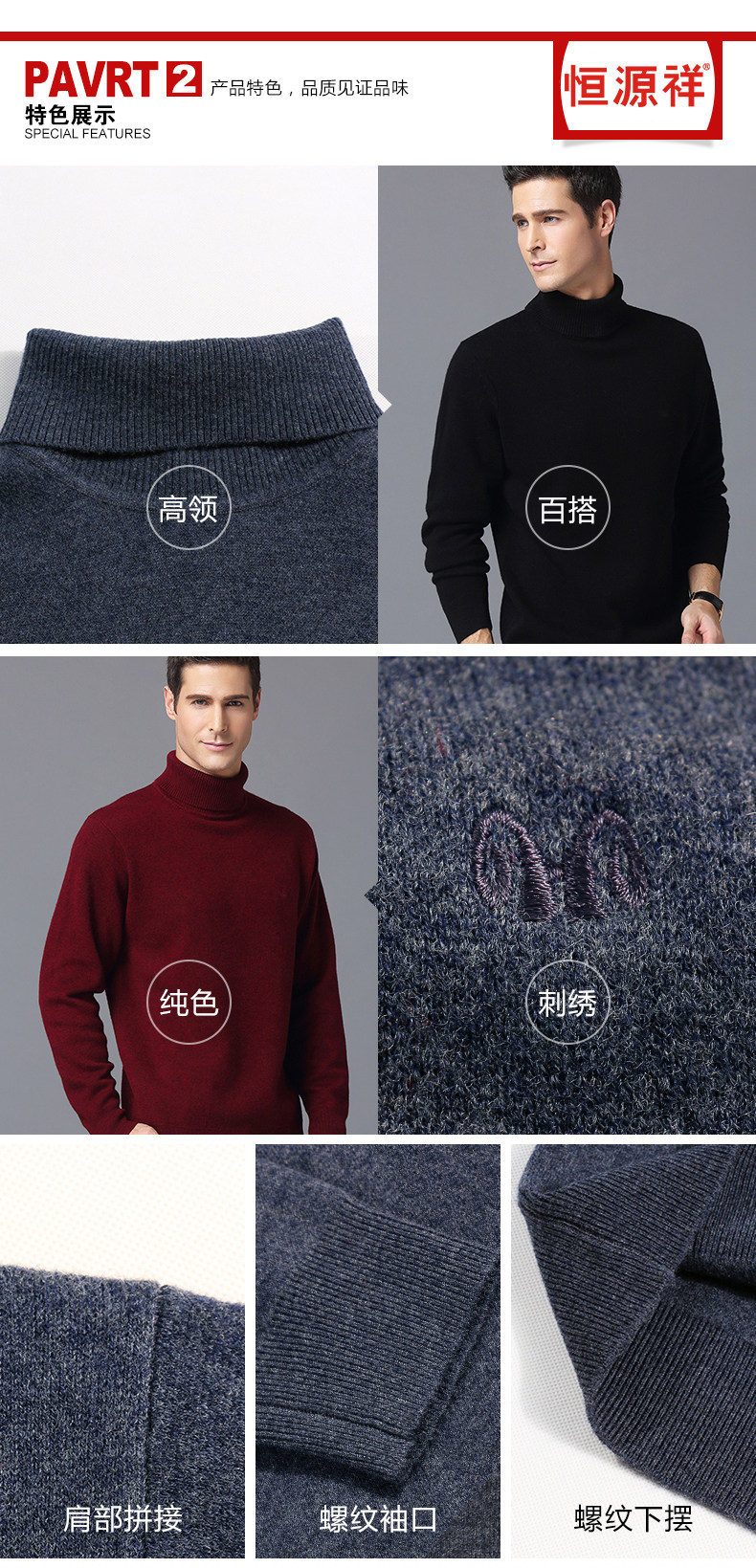 Hengyuanxiang nam áo len mùa đông mới cao cổ áo đôi ve áo áo len nam trung niên dày ấm áo len Áo len