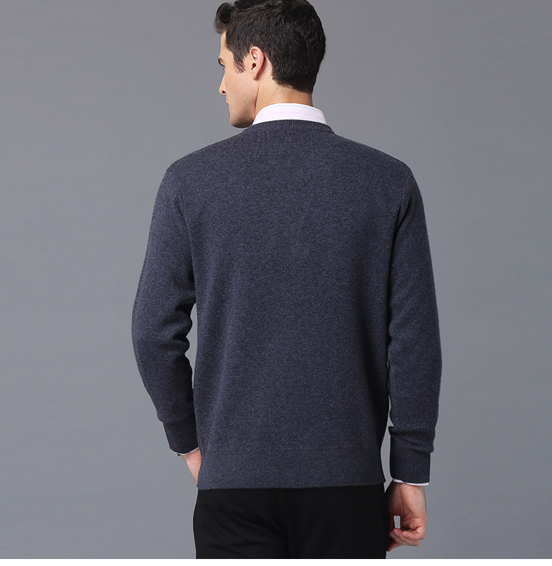 Hengyuanxiang áo len nam mùa đông mới V-Cổ người đàn ông dày của áo len nam màu rắn trung niên của nam giới gà tim cổ áo len