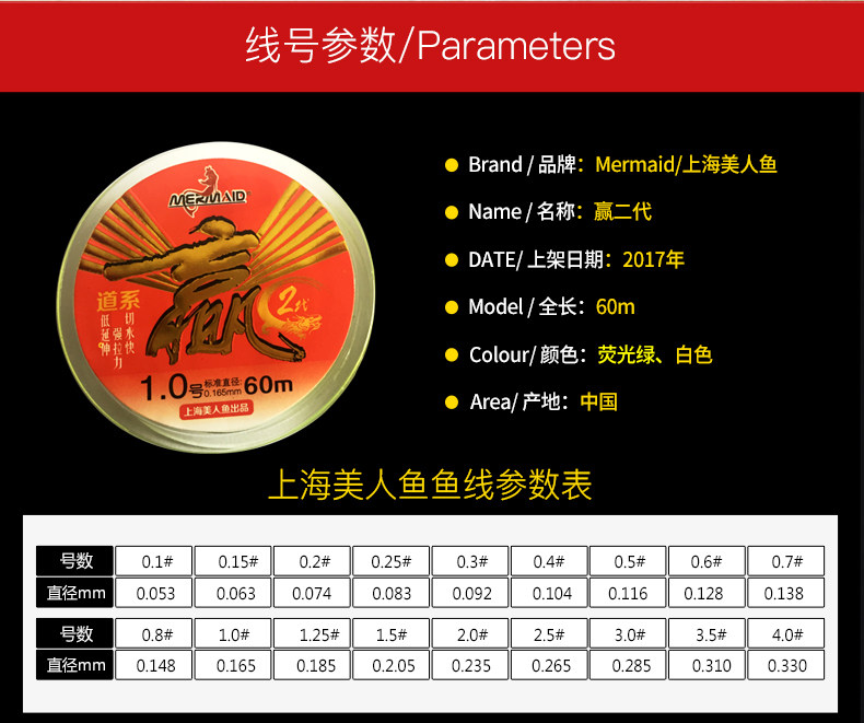 Mermaid câu cá giải quyết chiến thắng mới 2 với dây câu sub-line dòng chính dây câu cá cạnh tranh thiết bị thế hệ thứ hai giành chiến thắng 60 mét Thiết bị đánh cá