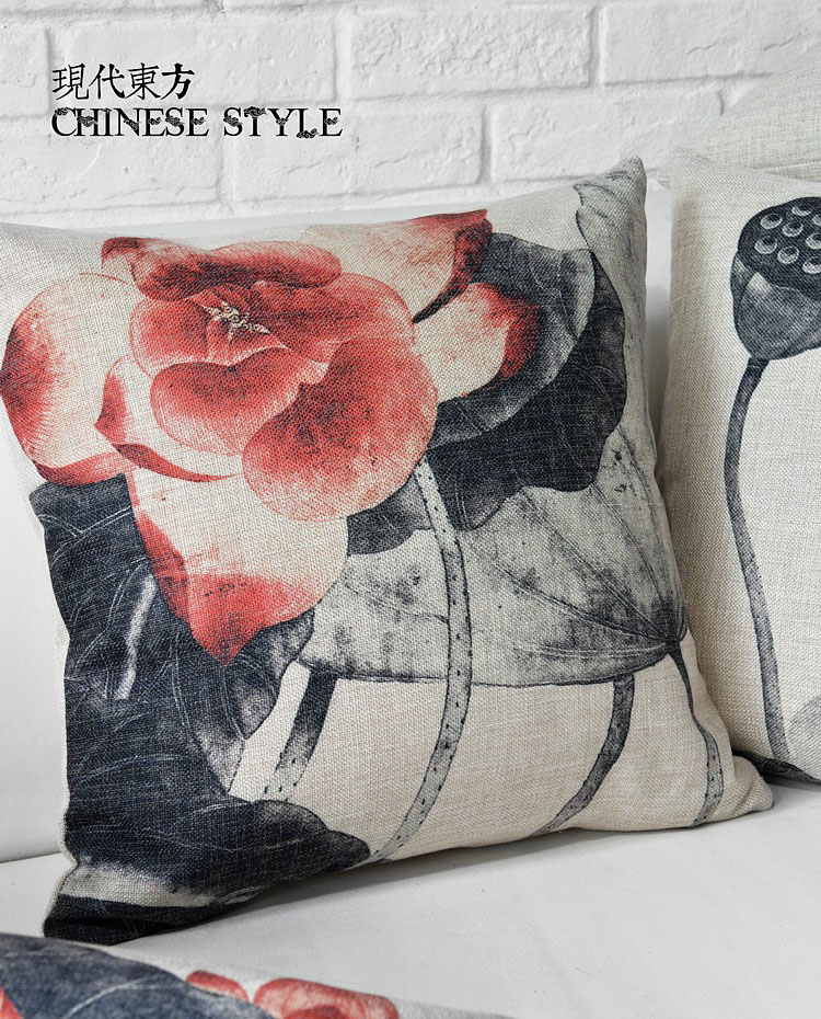 Sáng tạo Của Trung Quốc phong cách hiện đại Của Trung Quốc phong cách gỗ gụ sofa vẽ mực sen ins ôm gối sofa cushion cover lõi lớn Trở lại đệm / Bolsters