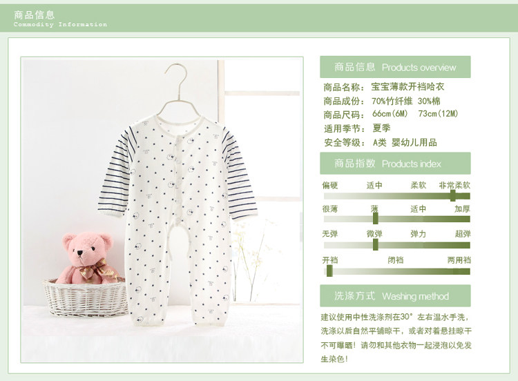 Mùa hè mỏng bé sợi tre jumpsuit dài tay áo mở người đàn ông và phụ nữ bé sơ sinh quần áo điều hòa không khí đồ ngủ Áo liền quần