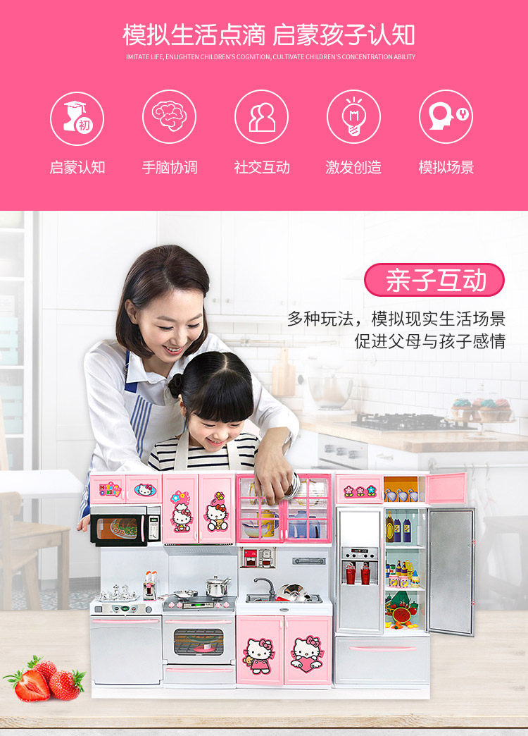 Hellokitty Hello Kitty Cô Gái Con Chơi Nhà Mini Mô Phỏng Nhà Bếp Tủ Lạnh Nấu Ăn Toy Set Đồ chơi gia đình