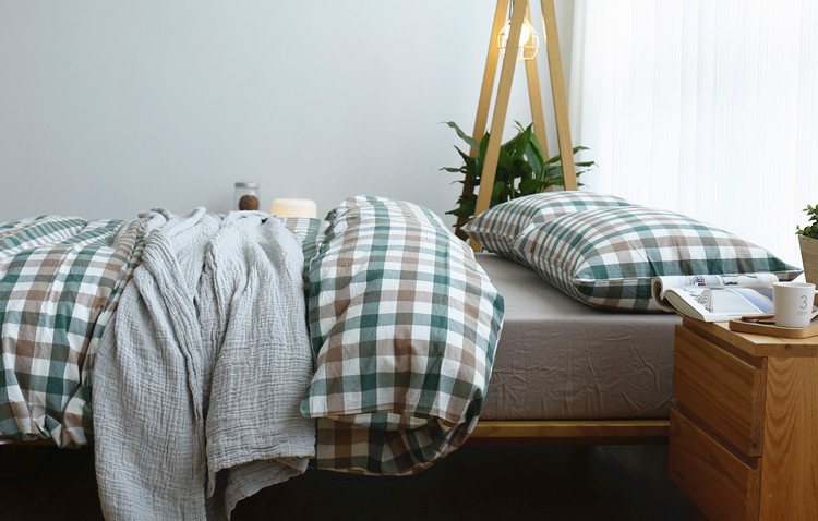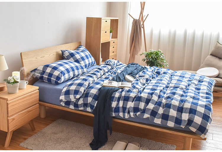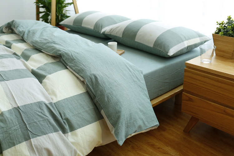 Bông rửa bốn mảnh bông đơn giản màu kẻ sọc sọc giường bông quilt quilt trải giường trải giường 笠 Bộ đồ giường bốn mảnh