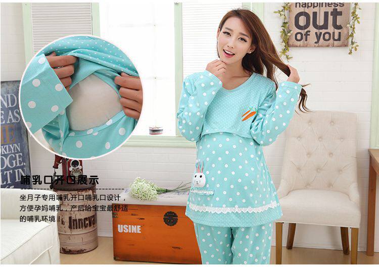 Mùa thu kích thước lớn phụ nữ mang thai dịch vụ nhà đồ ngủ phù hợp với cho con bú quần áo tháng quần áo 200 pound dài tay áo mùa thu quần áo chất béo cotton m Giải trí mặc / Mum mặc
