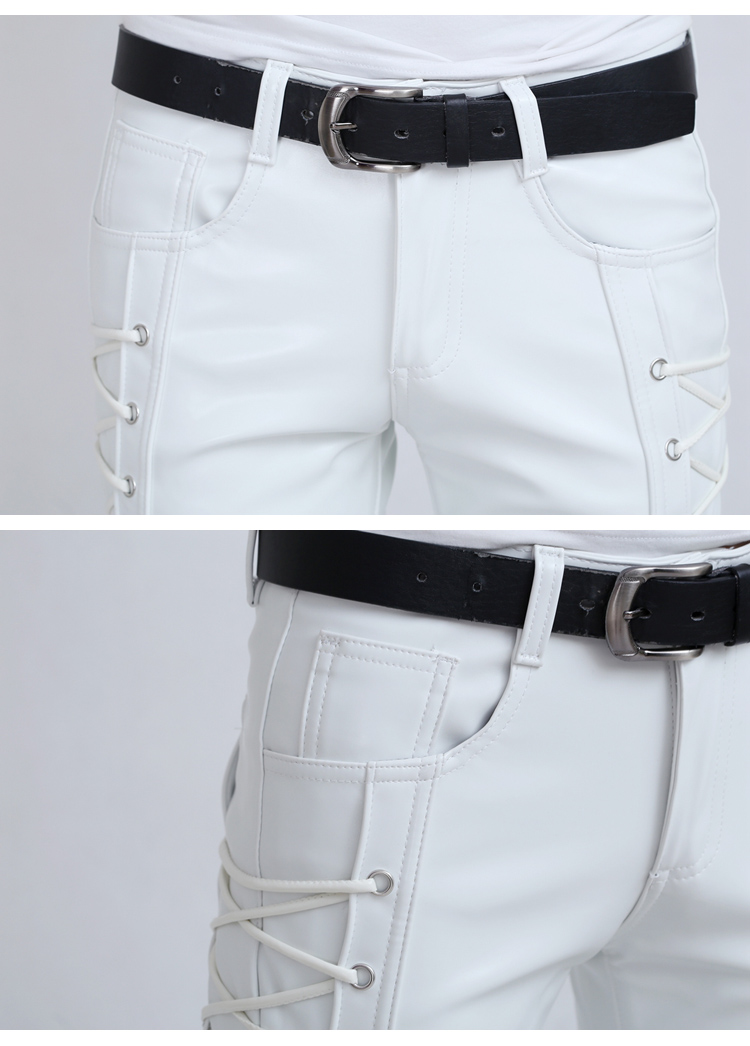 Teen mùa thu và mùa đông nam quần da tied rope Slim triều thời trang nam quần bé trai hiệu suất sân khấu hộp đêm feet quần