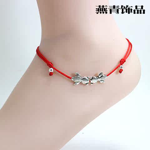 Nam giới và phụ nữ vòng chân nữ Hàn Quốc phiên bản của sinh viên đơn giản Sen sợi dây màu đỏ chuông chân dây thời trang đen retro vòng chân vòng chân Vòng chân