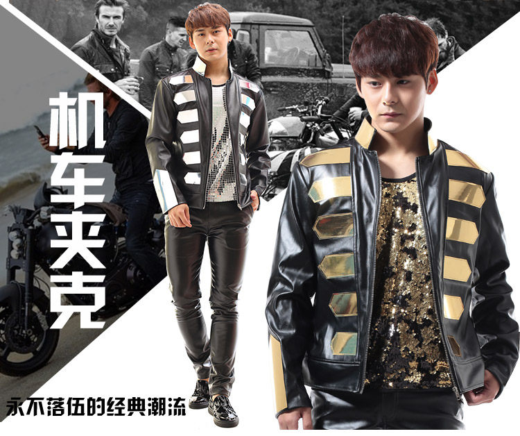 Châu âu và Hoa Kỳ hộp đêm nam ca sĩ thanh DJ rock punk vàng đen Harley xe máy da chương trình biểu diễn trang phục nam