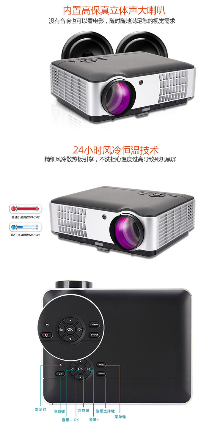 Rigal Rig-ng RD-806 Văn phòng 3D HD, Văn phòng, nhà của không dây wifi micro micro Máy chiếu