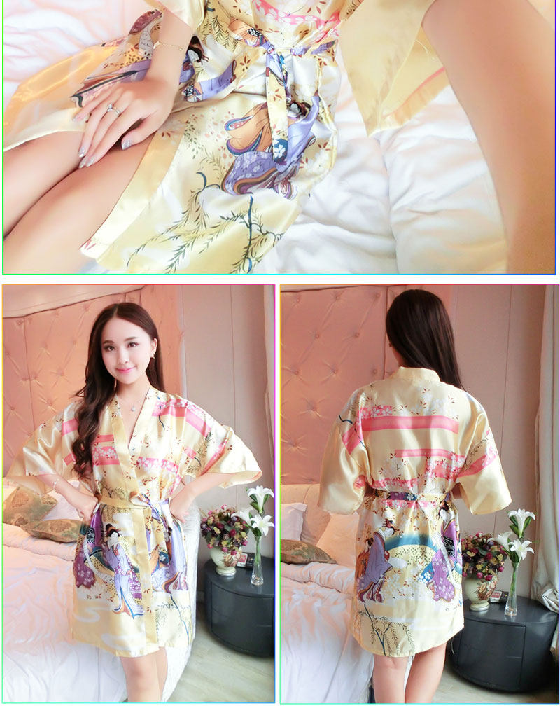 Nữ duy nhất khí áo ngủ nữ mùa hè sexy mê hoặc băng lụa siêu ngắn nightdress vui vẻ áo choàng tắm lụa yukata phần mỏng nữ