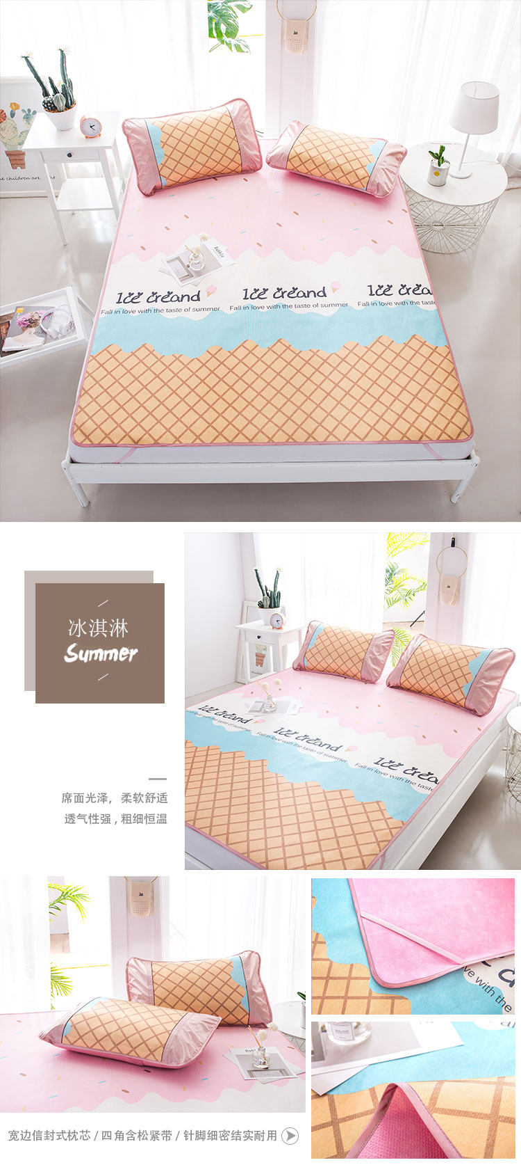 Net màu đỏ băng lụa ghế ba mảnh 1.8m giường mùa hè điều hòa không khí ghế sinh viên hai mảnh phim hoạt hình mềm mat 1,5 rơm mat Thảm mùa hè