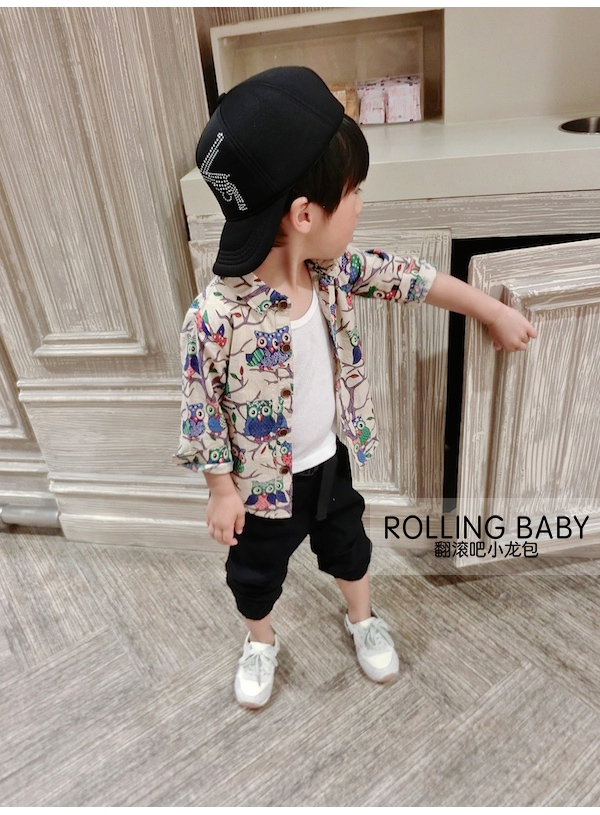 Trẻ em dài tay áo hoa áo sơ mi mùa xuân mô hình 17 trẻ em mới của quần áo cậu bé bé phim hoạt hình áo trẻ em cổ áo sơ mi Áo sơ mi