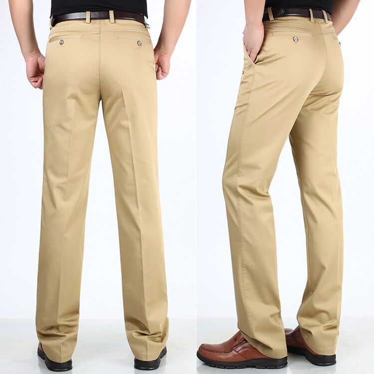 Mùa hè trắng tinh khiết người đàn ông kinh doanh mới của quần lỏng cao eo thẳng trung niên của nam giới thường quần cotton mỏng quần dài Quần tây thường