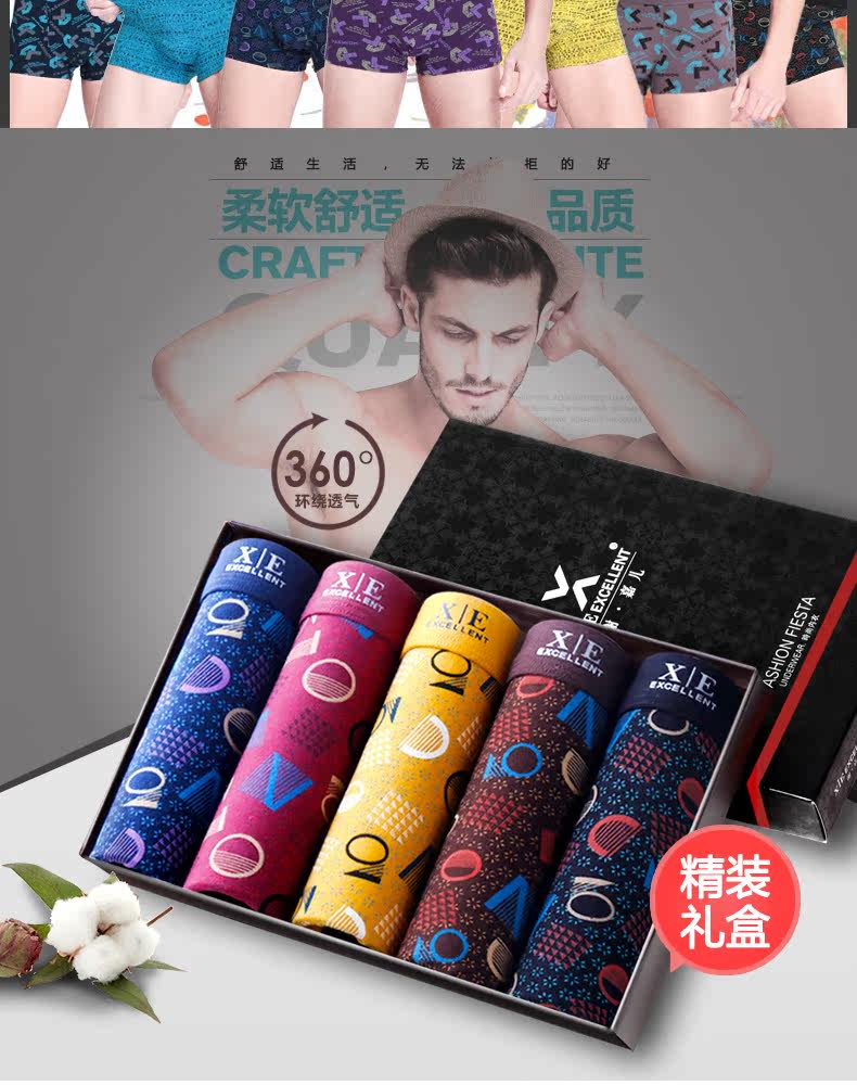 5 hộp quà tặng nam đồ lót nam cotton mồ hôi thấm quần short boxer thoáng khí, giữa eo U lồi bốn góc Bộ quà tặng