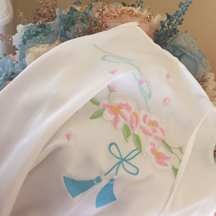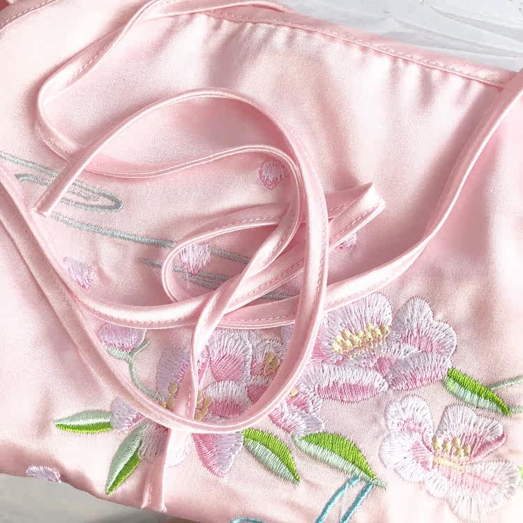 Retro Hanfu Dưới Gió Quốc Gia Lụa Cổ Điển Sexy Thêu Màu Trắng Tinh Khiết Shili Peach Tạp Dề Đồ Ngủ