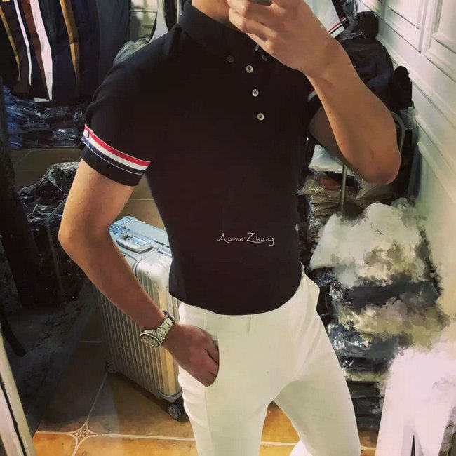Mùa hè Châu Âu và Vương Quốc Anh Anh Slim Polo Áo Sơ Mi Ngắn Tay Áo TB Gió Tricolor Ribbon Ánh Sáng Polo Áo Tide Cotton T Polo