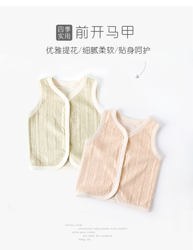 Hữu cơ màu cotton bé vest mùa xuân và mùa thu cotton phần mỏng nam sơ sinh vest cardigan nữ bé vest vai mùa hè Áo ghi lê