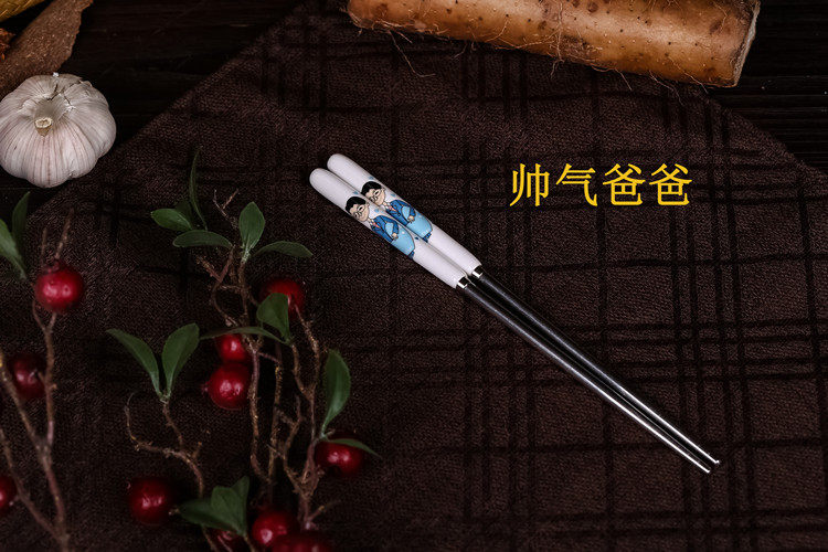 3 phim hoạt hình cha mẹ và con đũa dài 22 cm bốn cổng home sứ xương thép không gỉ bộ đồ ăn trung quốc Jingdezhen Đồ ăn tối