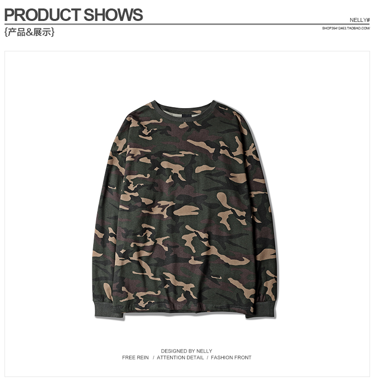 Châu âu và Hoa Kỳ tide thương hiệu cao đường phố TĂNG CẢ quân sự net red nam giới và phụ nữ loose vai ngụy trang dài tay T-Shirt Áo phông dài