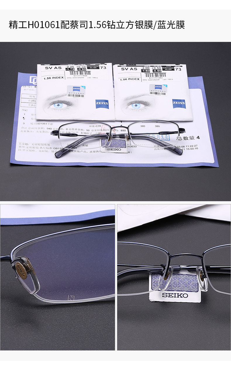 Carl Zeiss ống kính 1.56 rõ ràng sắc nét kim cương khối bạc phim 1.60 1.67 chống ánh sáng màu xanh 1.74 kính cận thị Kính đeo mắt kính