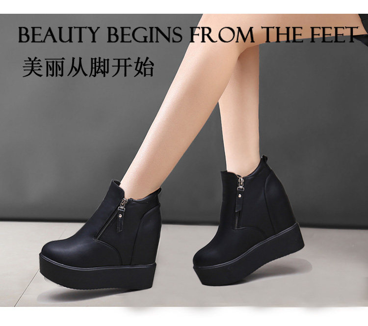 Khởi động mùa đông nêm với đáy dày tăng phụ nữ mắt cá chân khởi động cao gót giày bông giày nữ mùa đông cộng với nhung mùa thu và mùa đông Martin khởi động khởi động của phụ nữ Giày ống