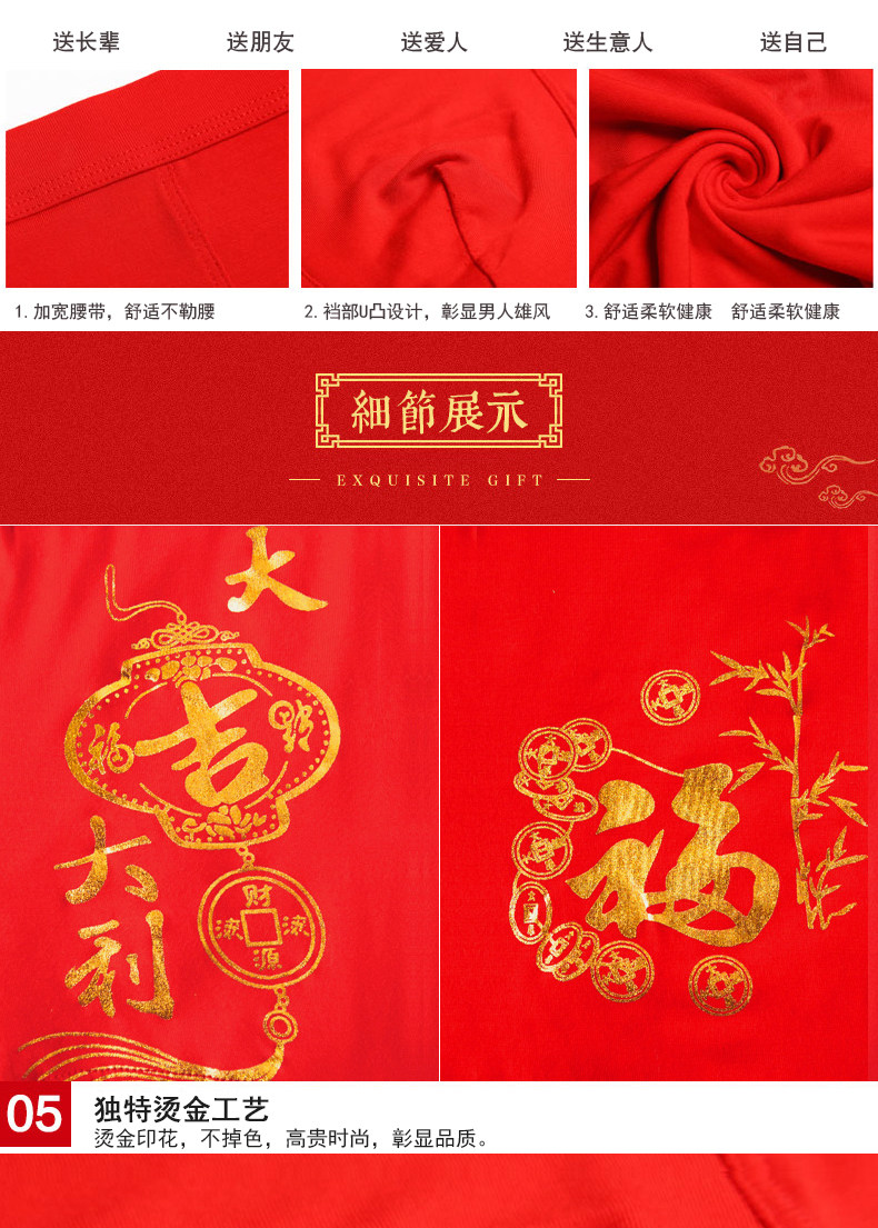 Dog Năm của Năm Red Big Kích Thước của Nam Giới Đồ Lót Hôn Nhân Chí Fortune Người Đàn Ông Thở Boxer Shorts Vớ Hộp Quà Tặng