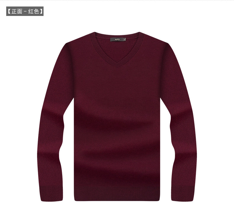 AFQ áo len nam kích thước lớn gà tim cổ áo len tinh khiết áo len nam giới kinh doanh của rắn màu V-Cổ áo len nam áo len